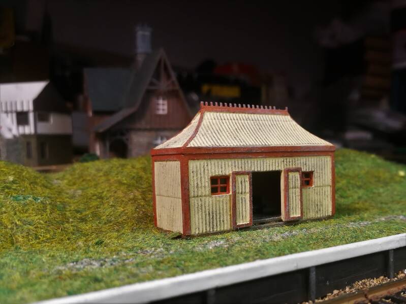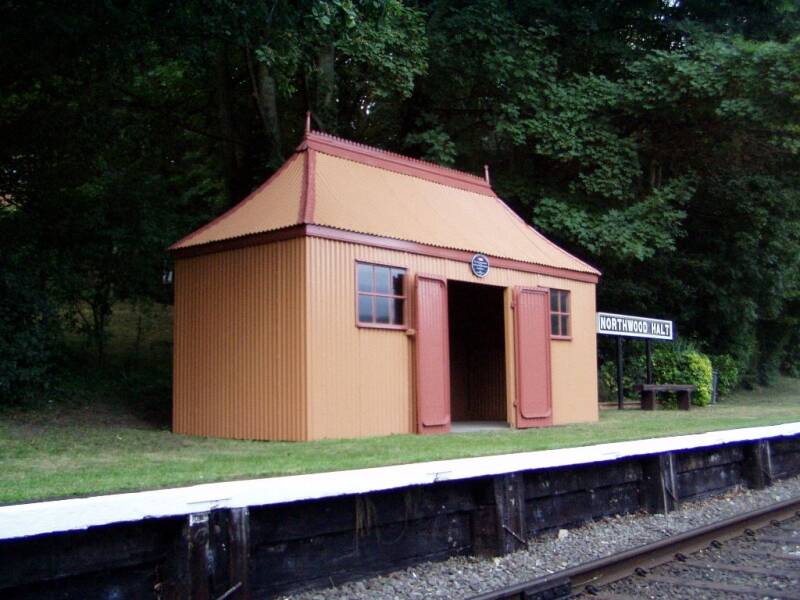 De bouw is gereed van dit ( G.W.R. ) wachthuisje " Northwood Halt " met "Pagode dak "