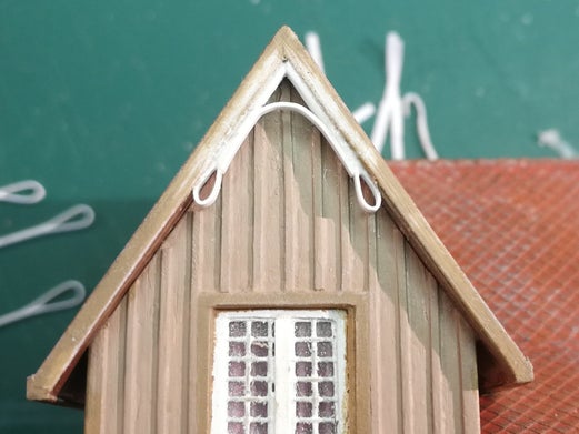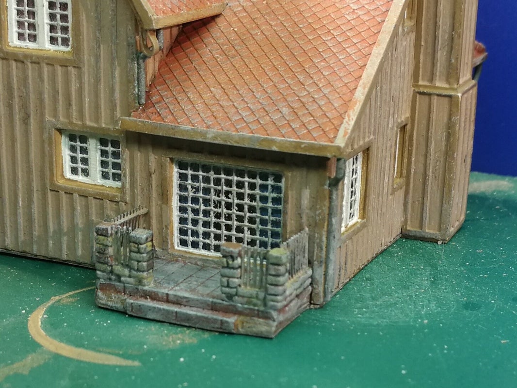 en gelijk de hoeken een andere kleur. Ook het dakje boven de weranda er alvast op gemaakt.