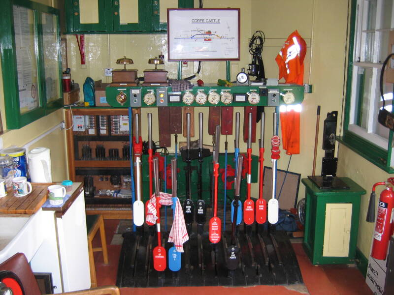 Zo ziet een seinhuisje er uit. Met veel meters en bellen en ook wissel en seinpaal handels.